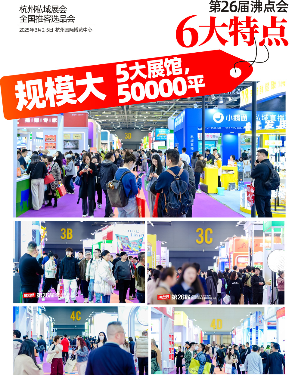 第26届沸点会,全国私域大会+展会,3月2-4号在杭州国际博览中心到成功举办。本届展会齐开五大展馆,聚千家企业,众多大企业大品牌参展,数万款源头好货集中展示,形成2025开年最大的私域展会,盛况空前!